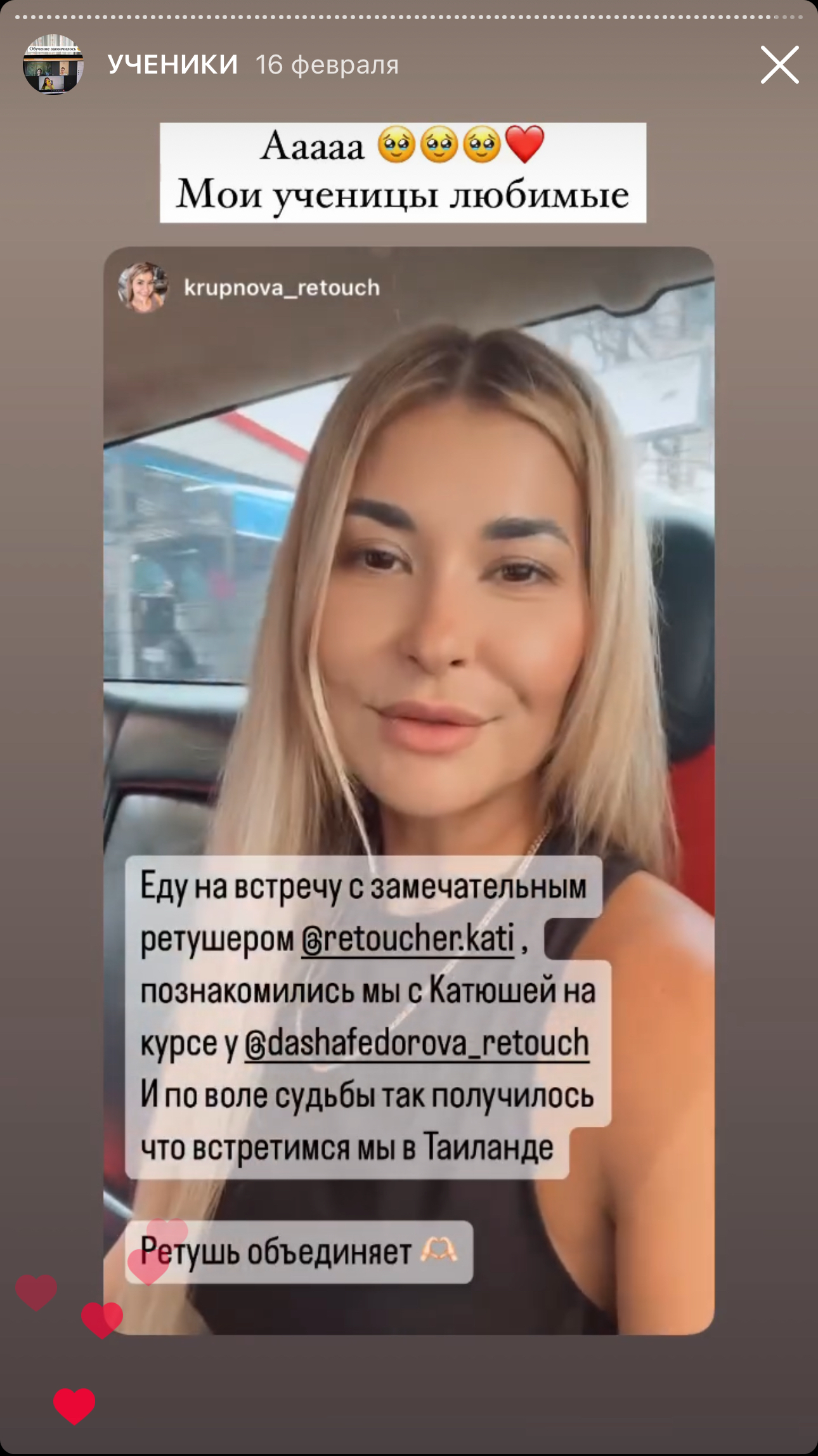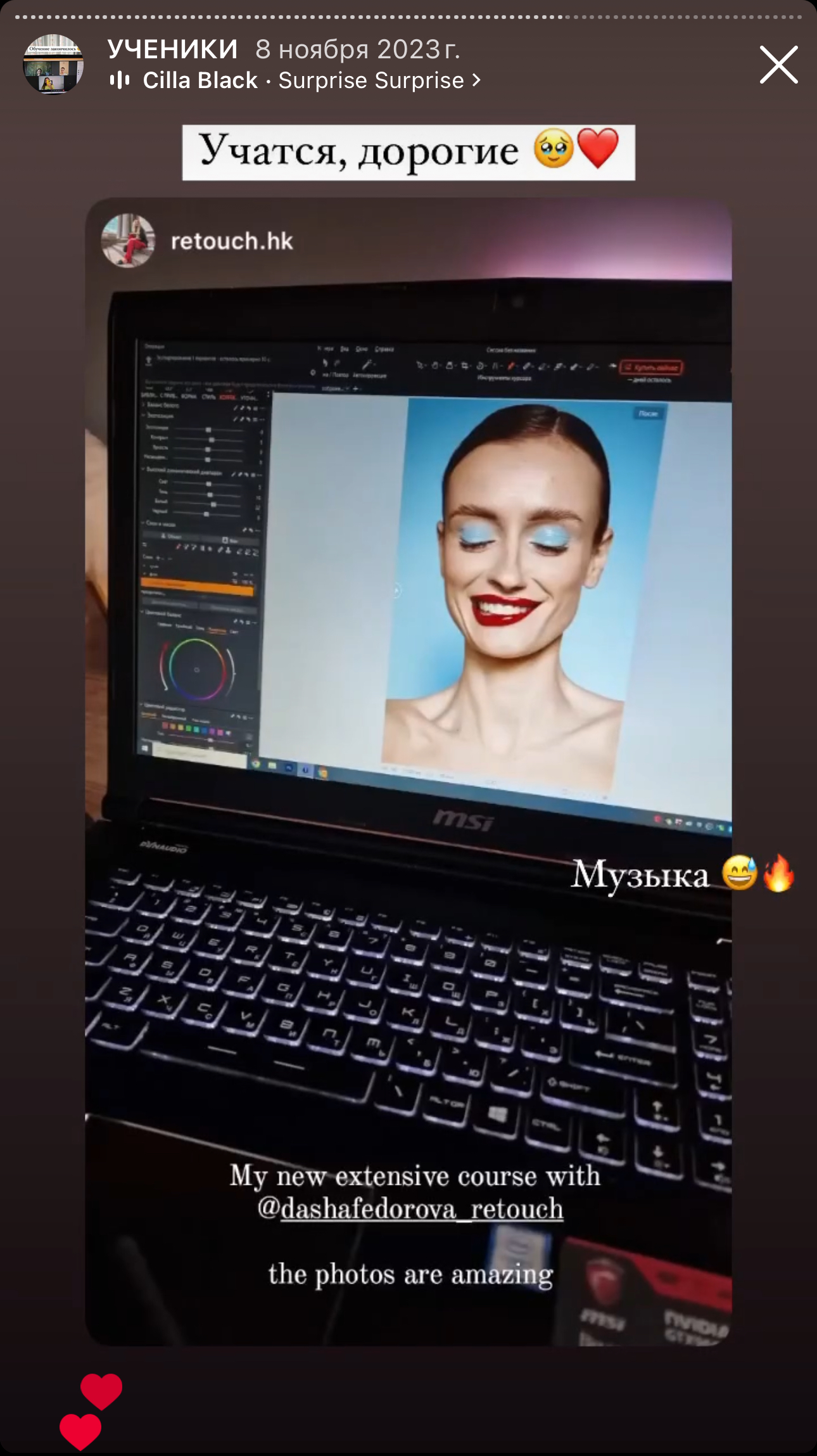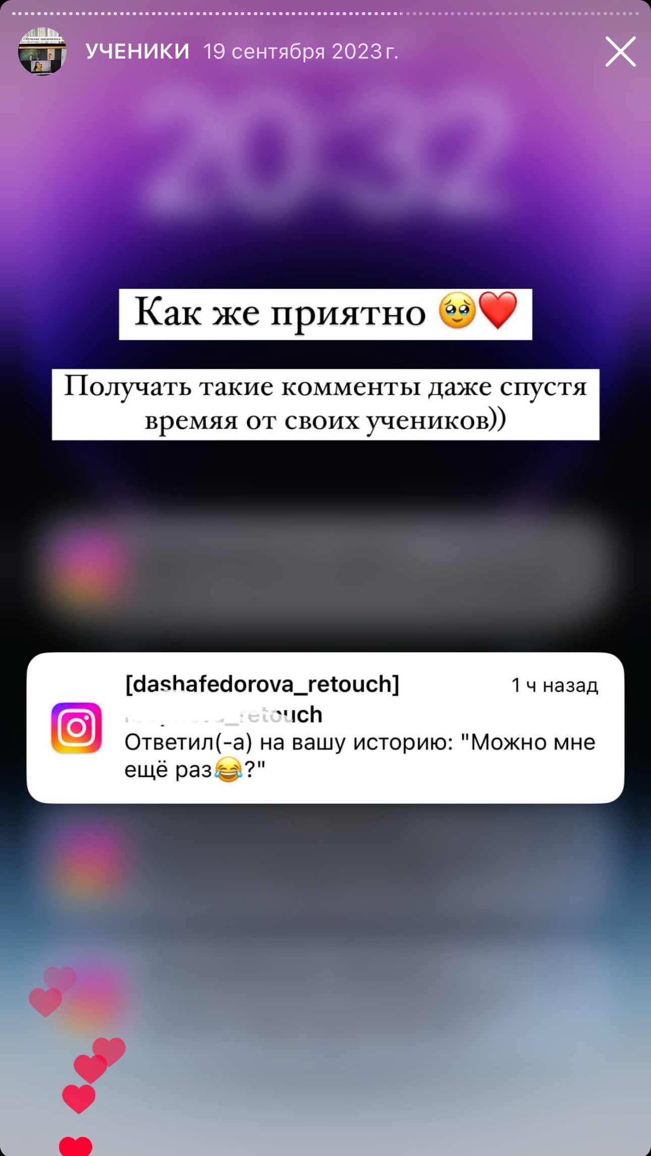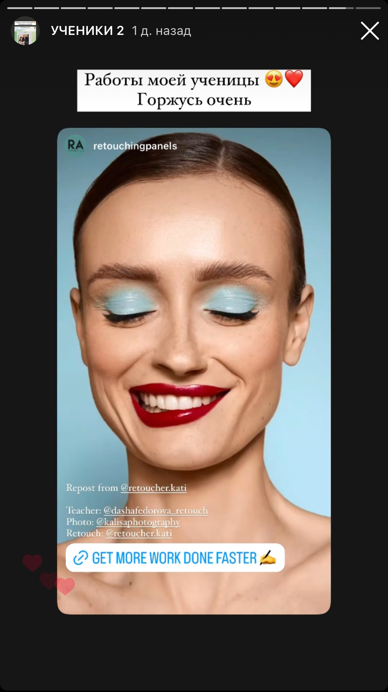 «Понравилось что все четко и по делу, понятно объясняете все техники. Все было понятно! Я обожаю вашу ретушь! ❤️»